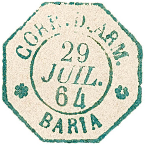 Dấu quân đội CORR.D.ARM BARIA ngày 29/7/1864 màu xanh lam