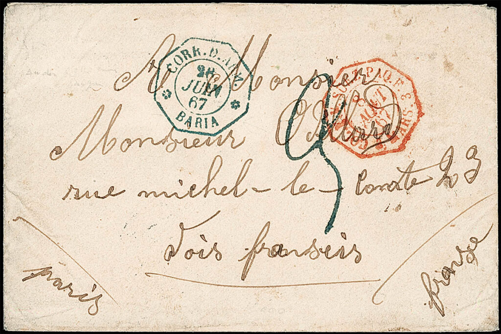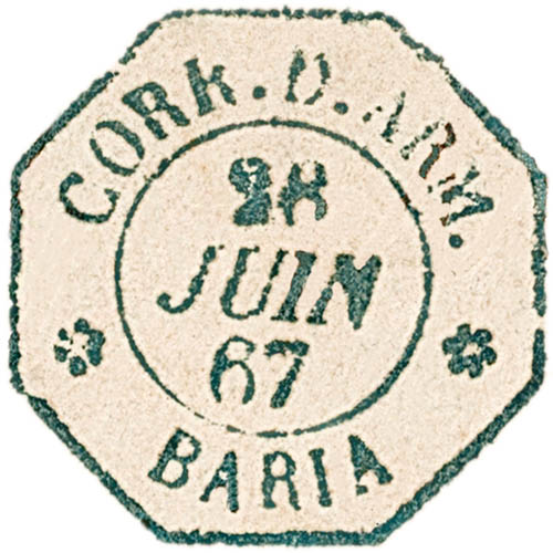 Dấu quân đội CORR.D.ARM BARIA ngày 28/6/1867 màu xanh lam