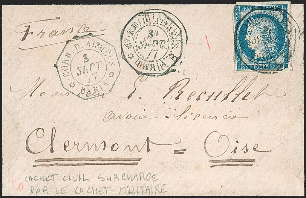 Dấu quân đội CORR.D.ARMÉES BARIA ngày 3/9/1877 màu đen