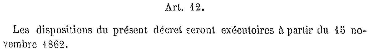 Điều 12 (Art. 12, hình dưới) của Thông tư 270 có nêu ngày hiệu lực là 15/11/1862. Trong các nguồn chính thống thì tôi thấy đây là biểu cước bưu chính sớm nhất dành cho Nam Kỳ. Nó áp dụng cho trao đổi thư từ giữa cơ sở Pháp tại Nam Kỳ và lực lượng Pháp đồn trú tại Thượng Hải, và còn có trước biểu cước bưu chính áp dụng giữa Nam Kỳ và mẫu quốc (hiệu lực từ 13/1/1863).