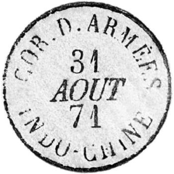 COR.D.ARMÉES | INDO-CHINE, 31 AOUT 1871, vòng tròn bên trong bị mờ