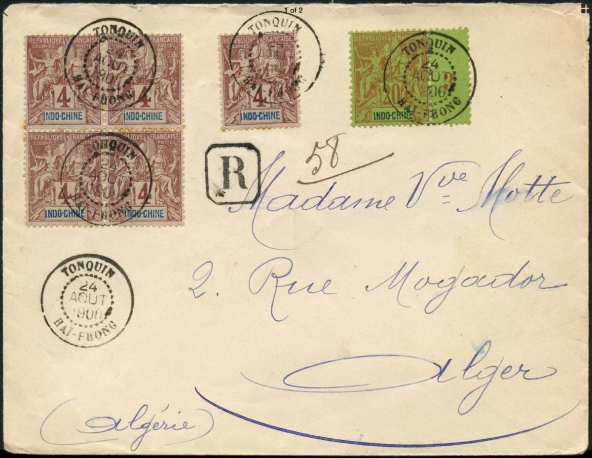 Thư bảo đảm gửi từ Hải Phòng đi Algieria 24/8/1900, mức cước 40c (15c thư thường + 25c bảo đảm)