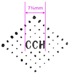 Dấu CCH lozenge có 3 dạng, số chấm bằng nhau nhưng khác nhau ở kích thước viên kim cương; kích thước chữ CCH và khoảng cách giữa các chữ cái; thời gian đưa vào sử dụng cũng khác nhau. Bảng dưới đây minh họa sự khác biệt và được xếp theo thời gian đưa vào sử dụng.