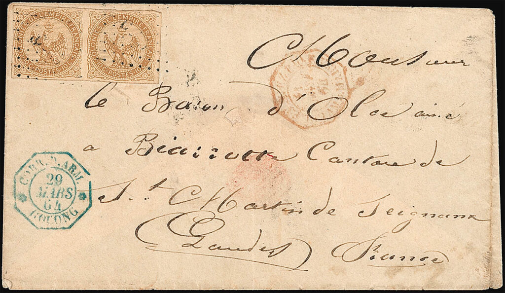 Bưu cục Gò Công thành lập ngày 15 tháng 7 năm 1863, sử dụng viên kim cương CCN5, sau đó tiếp nhận được 2 viên tem với dấu ngày của quân đội. Dấu CCN5 đôi khi được thay thế bằng dấu CCH giữa 1872 và 1873. Vật phẩm bưu chính gửi từ bưu cục này rất hiếm.