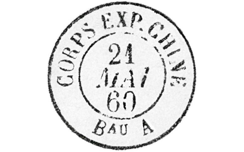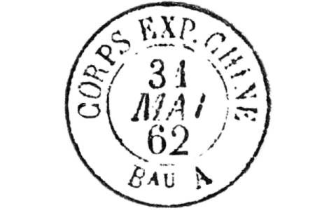 Lực lượng viễn chinh Pháp tại viễn Đông (Military P.O. of the French Expeditionary Forces) trong giai đoạn 1860-1862 sử dụng nhật ấn với tiêu đề: CORPS EXP. CHINE, đi kèm với 4 vùng: